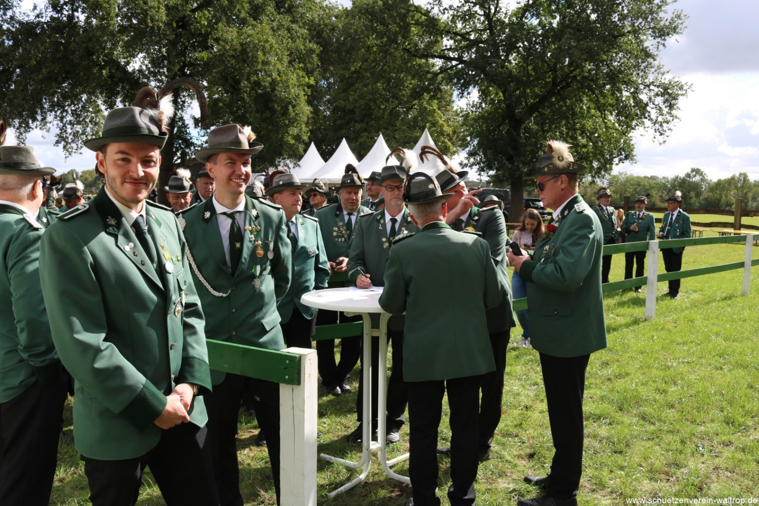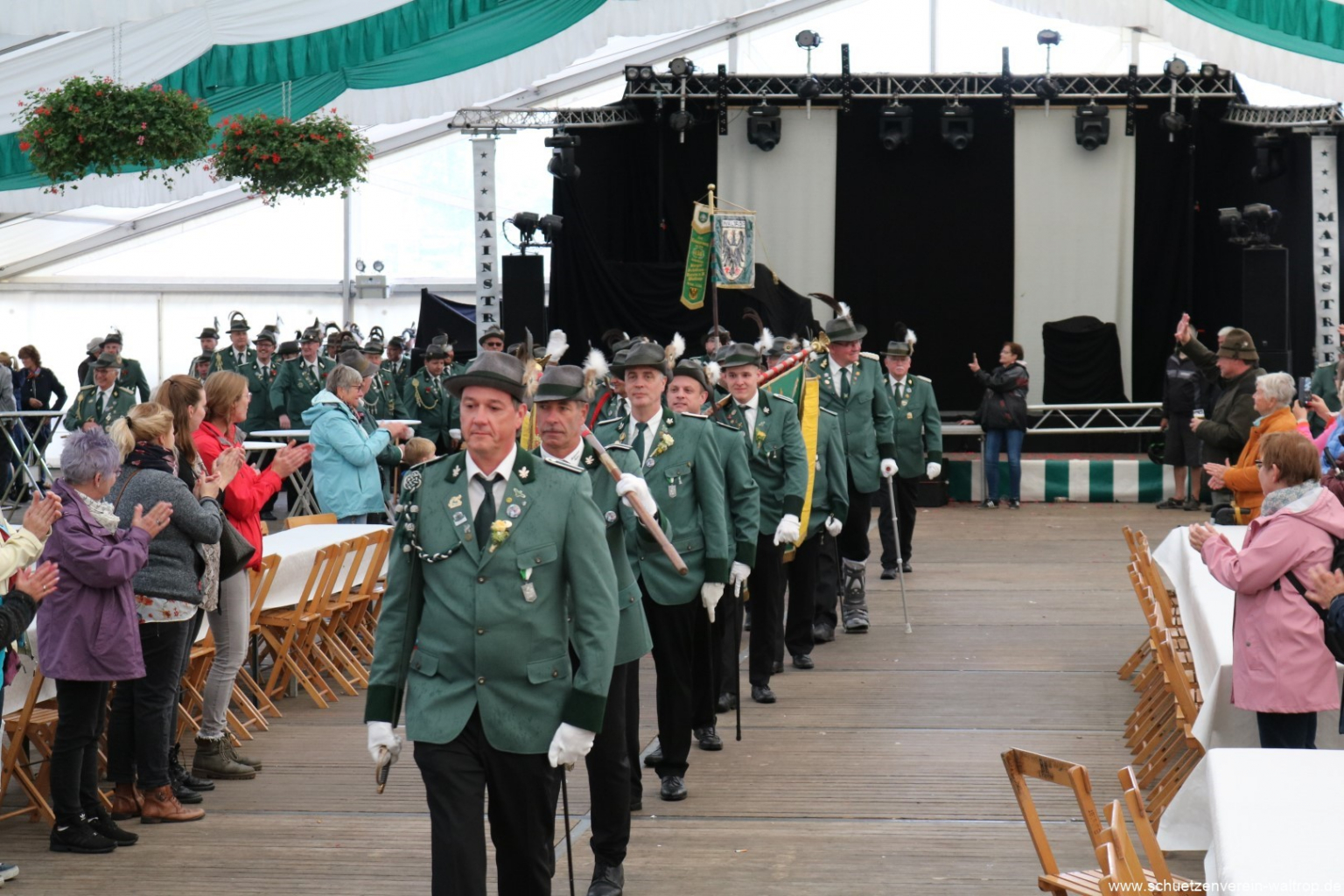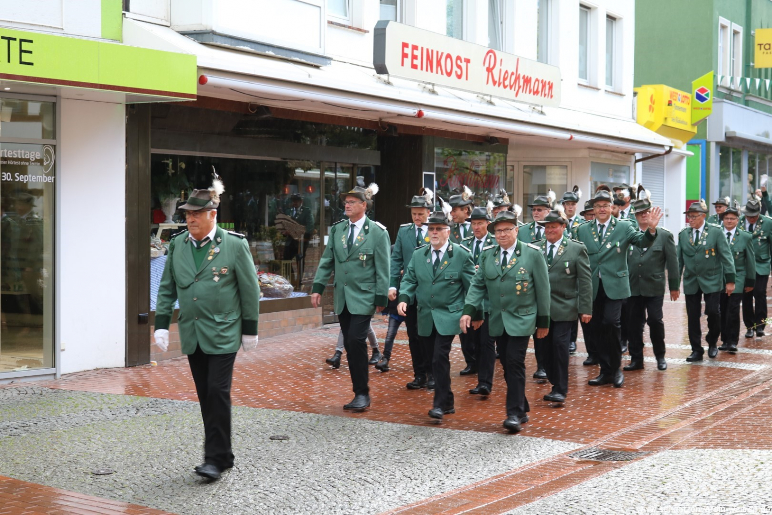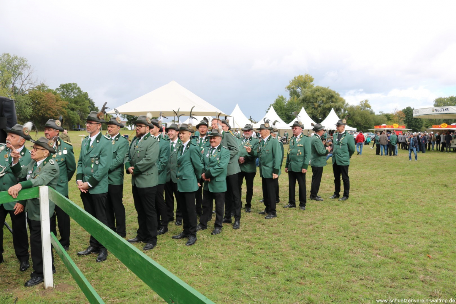 Nach dem Antreten in der Stadt und dem anschließenden Marsch zur Vogelwiese, begann ein spannendes Schießen zunächst um die Insignien.