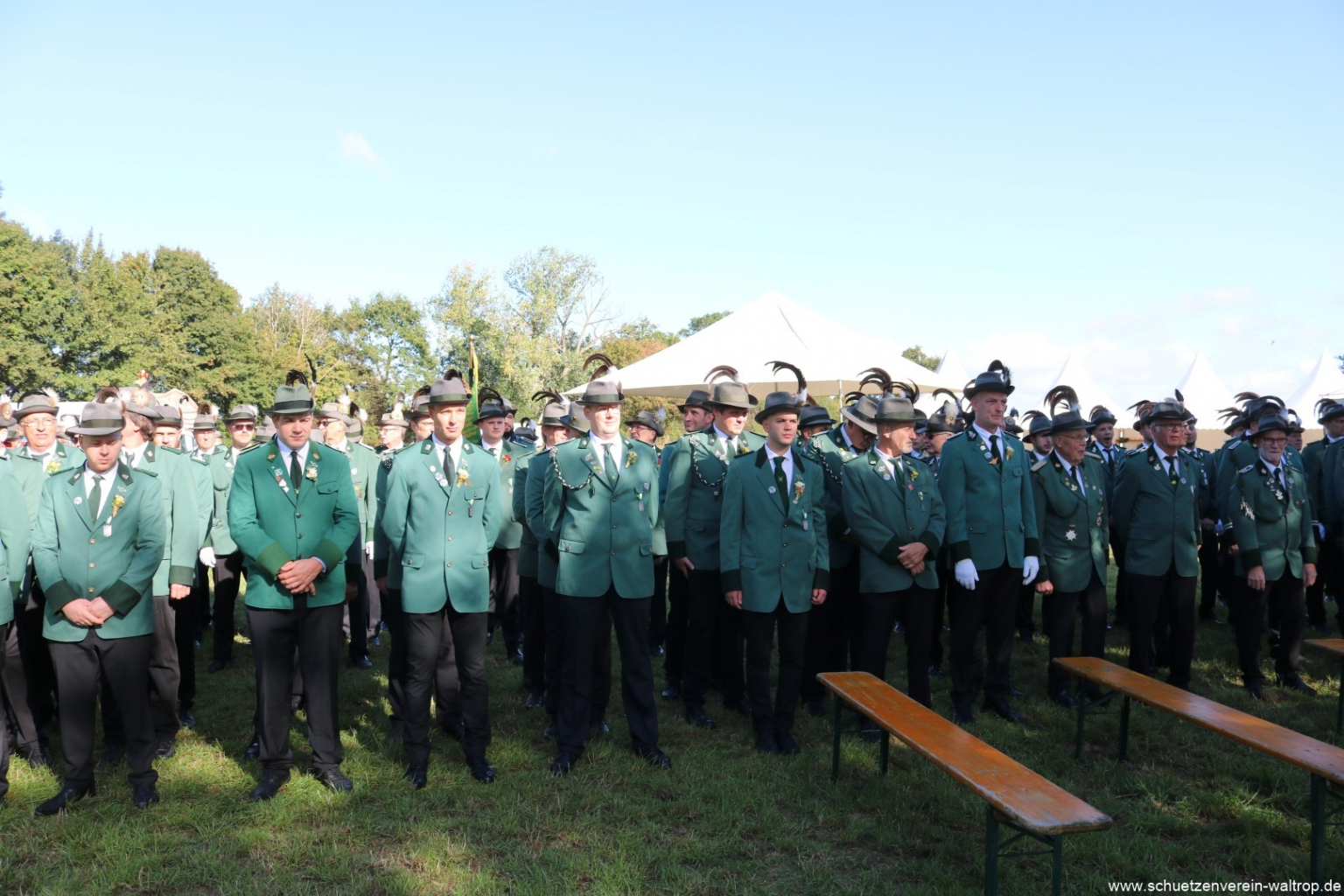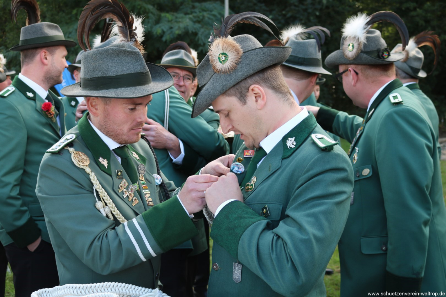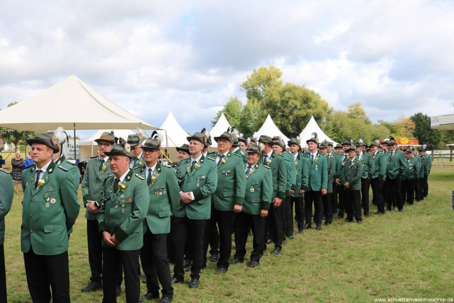 Nach dem Antreten in der Stadt und dem anschließenden Marsch zur Vogelwiese, begann ein spannendes Schießen zunächst um die Insignien.