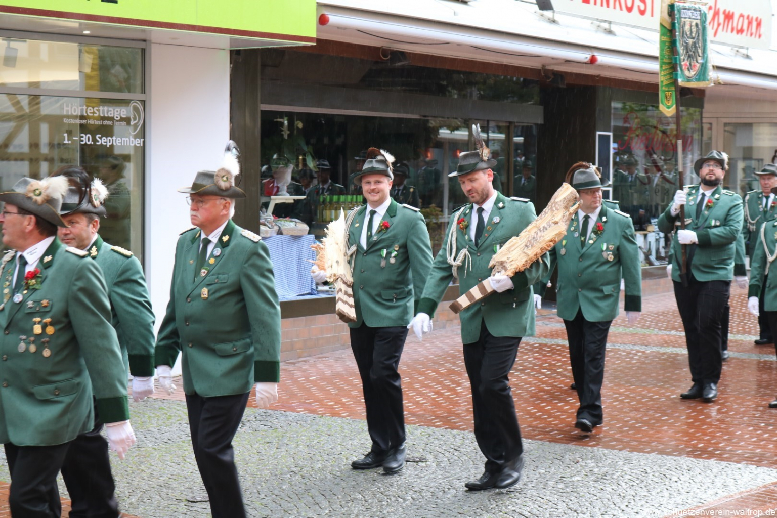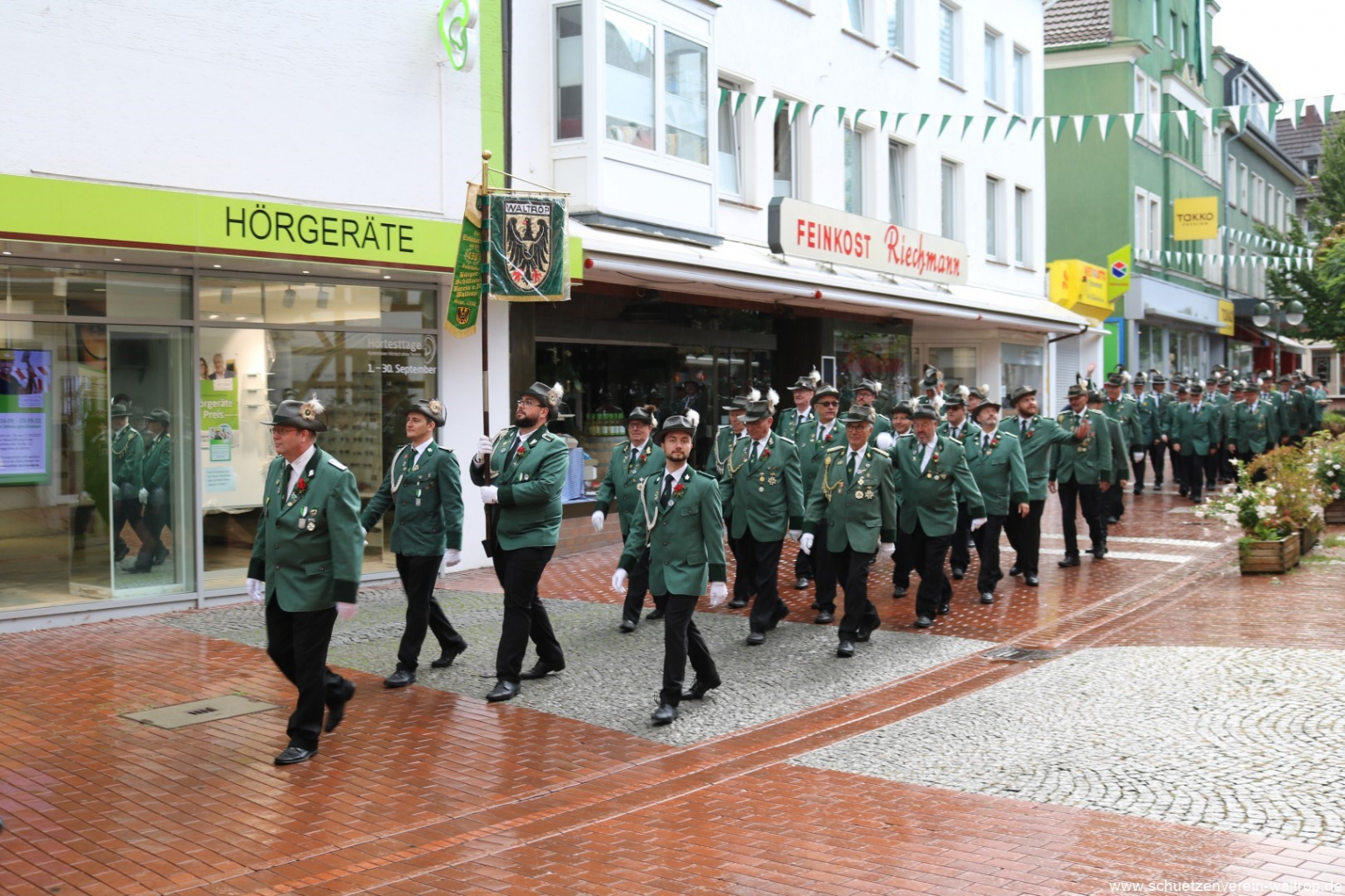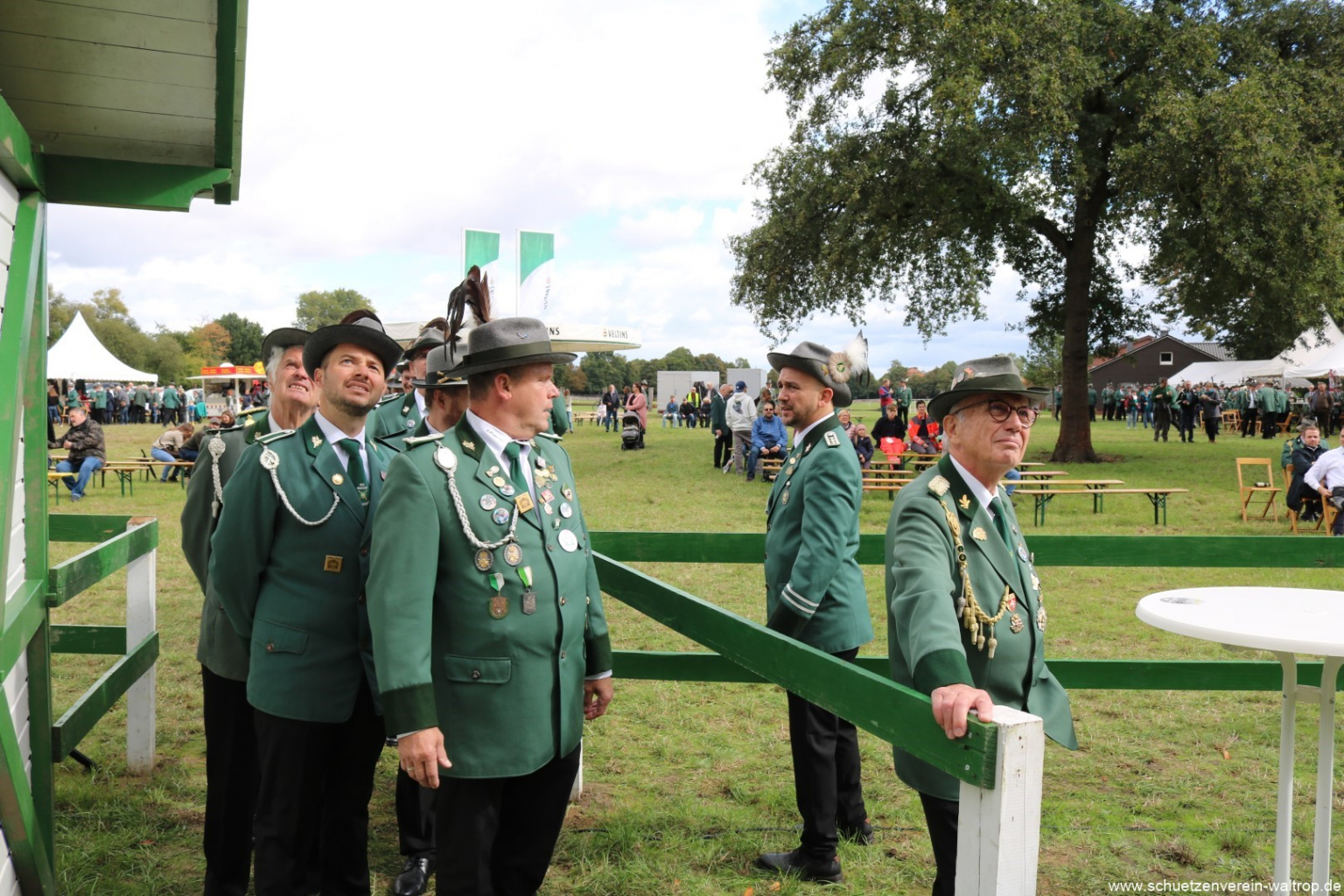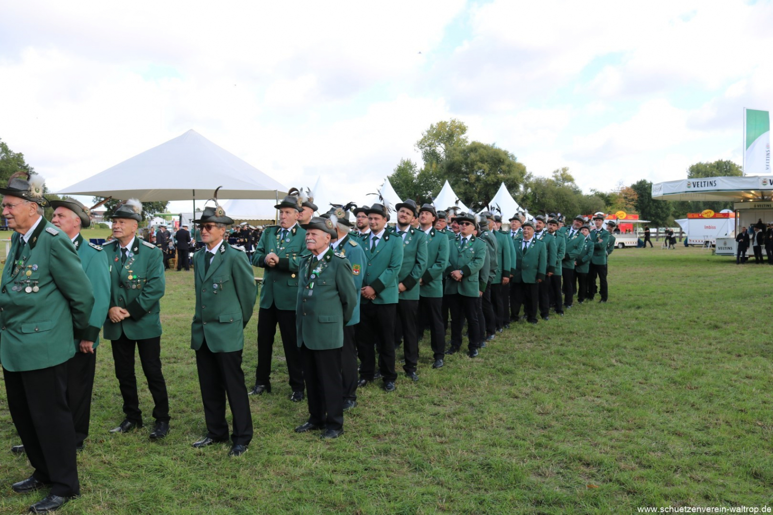 Nach dem Antreten in der Stadt und dem anschließenden Marsch zur Vogelwiese, begann ein spannendes Schießen zunächst um die Insignien.
