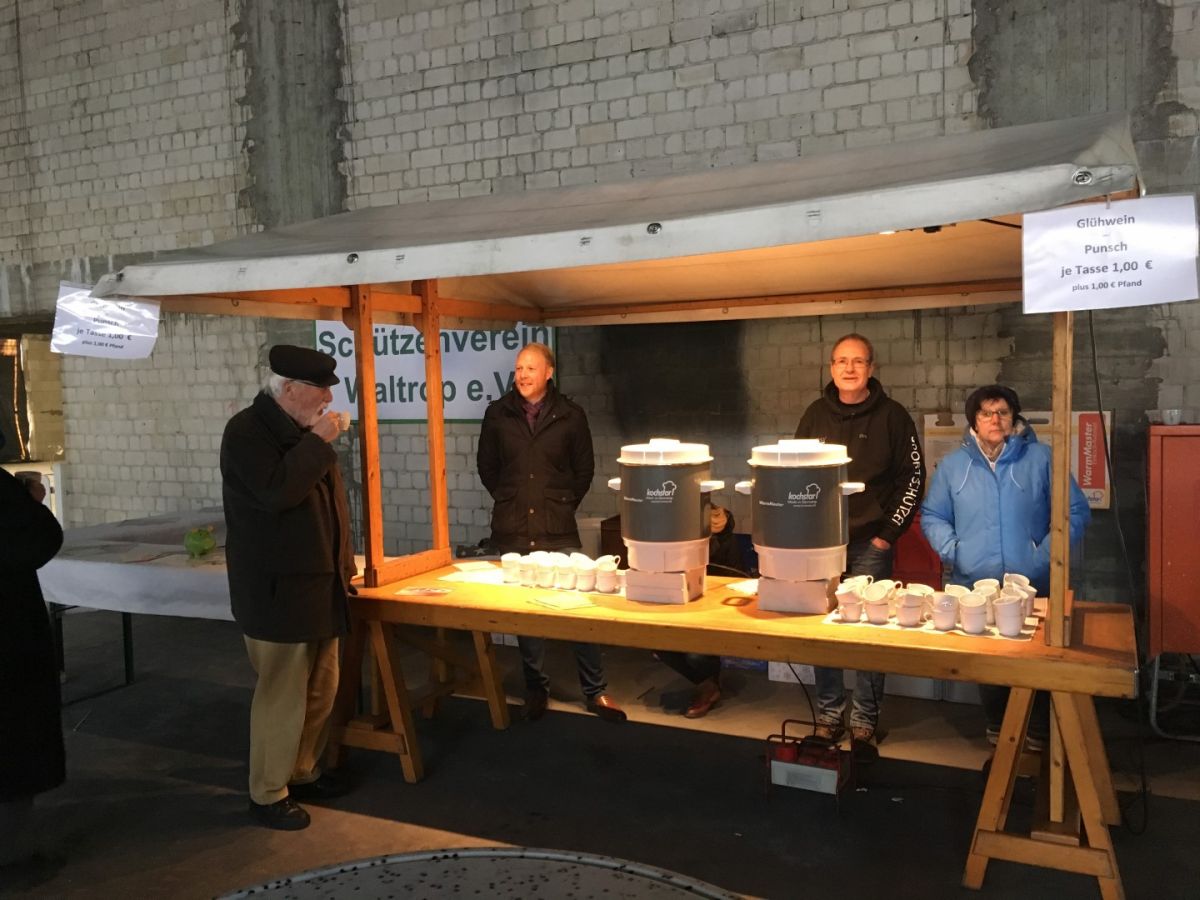 Unsere Sportschützen samt Partnerinnen, mit dem Schießstand bekanntlich im Keller der Halle beheimatet, versorgten derweil die Anwesenden mit heißem Glühwein oder alkoholfreiem Punsch zum kleinen Preis. Da die Halle nicht beheizt war, wurde auch dieses Angebot sehr gut angenommen.