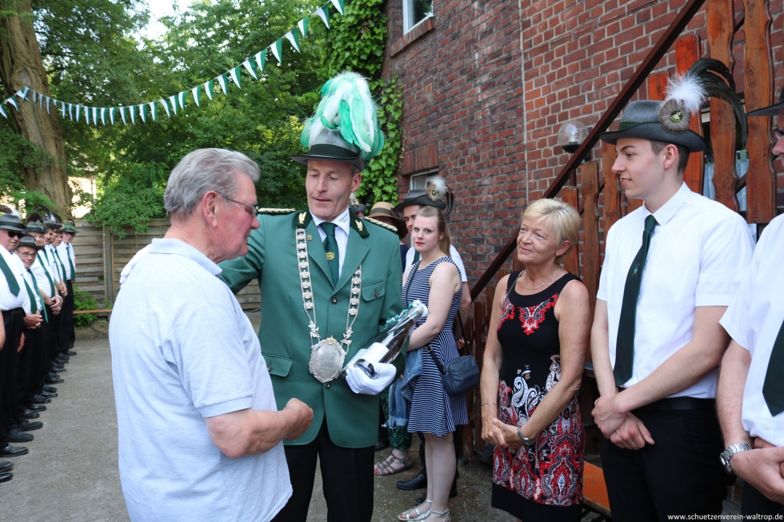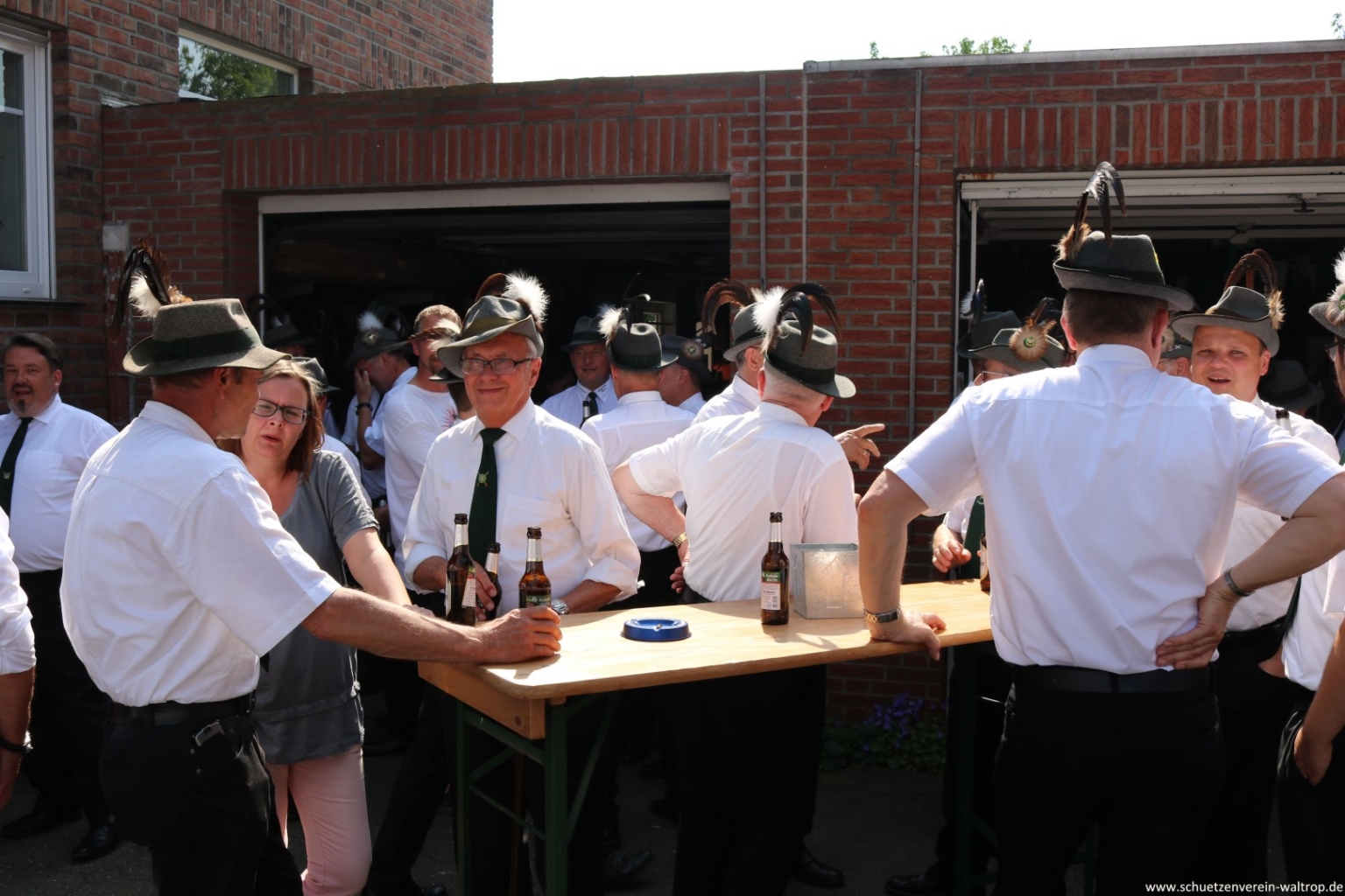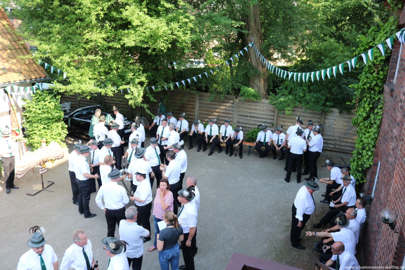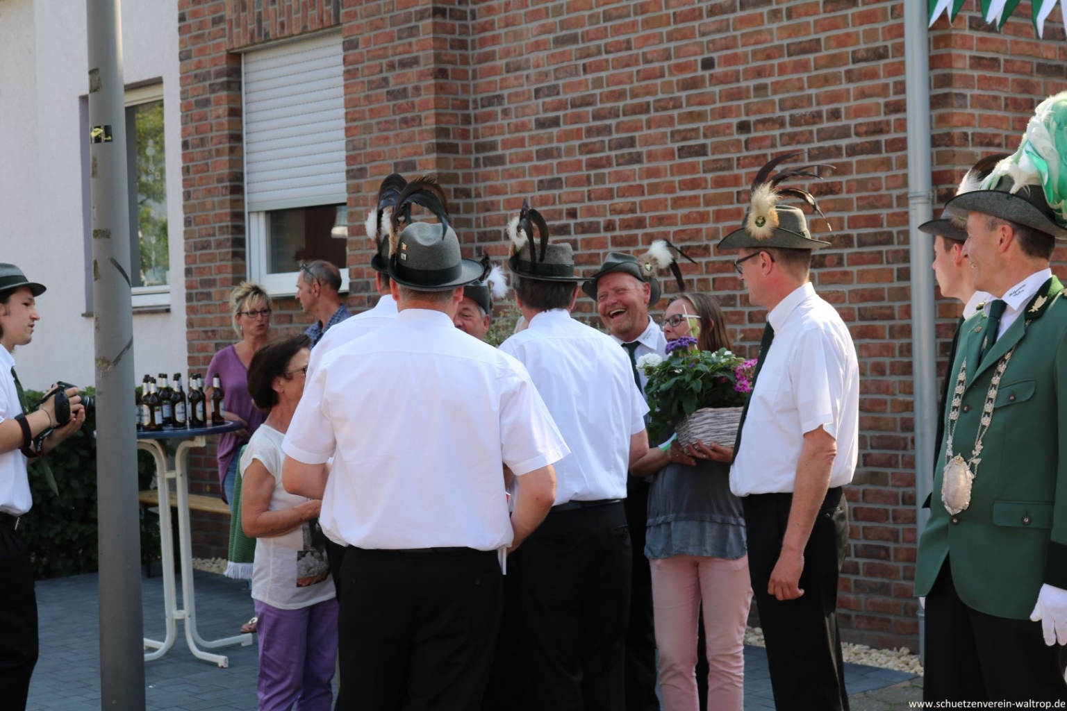 Im Innenhof des Hauses Riechmann wurden wir anschließend hervorragend bewirtet. Bei kühlen Getränken, Wein und Grillwurst konnte das rundum gelungene Vogelabholen noch gebürtig ausklingen.