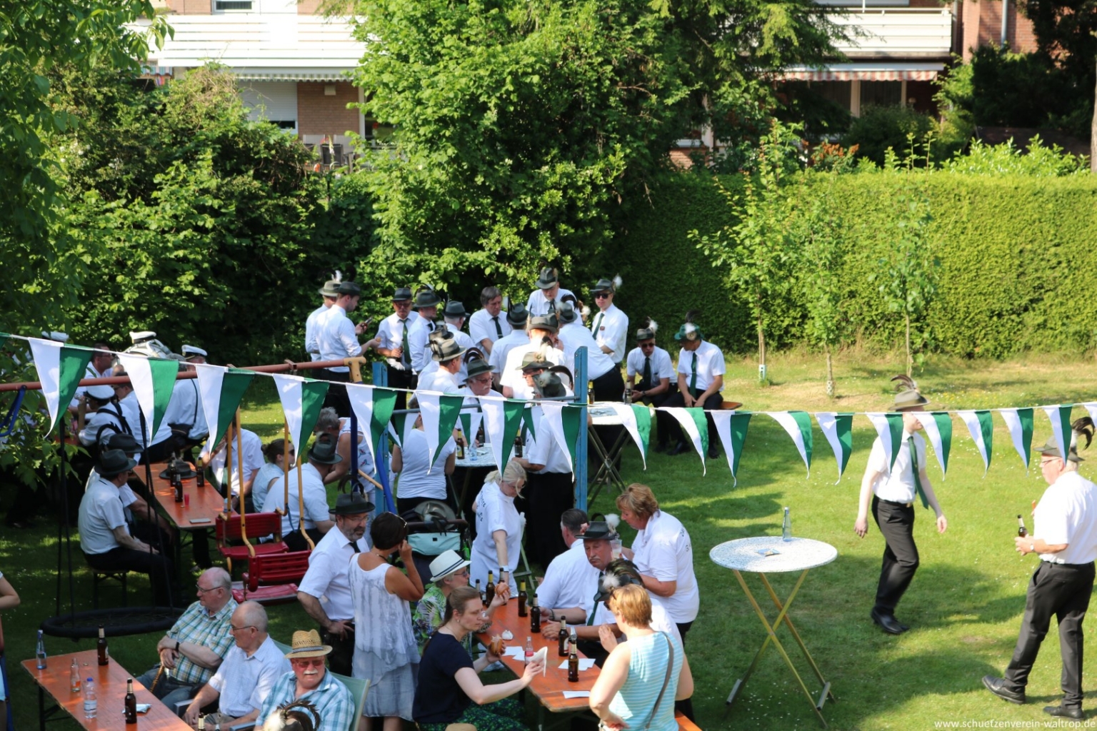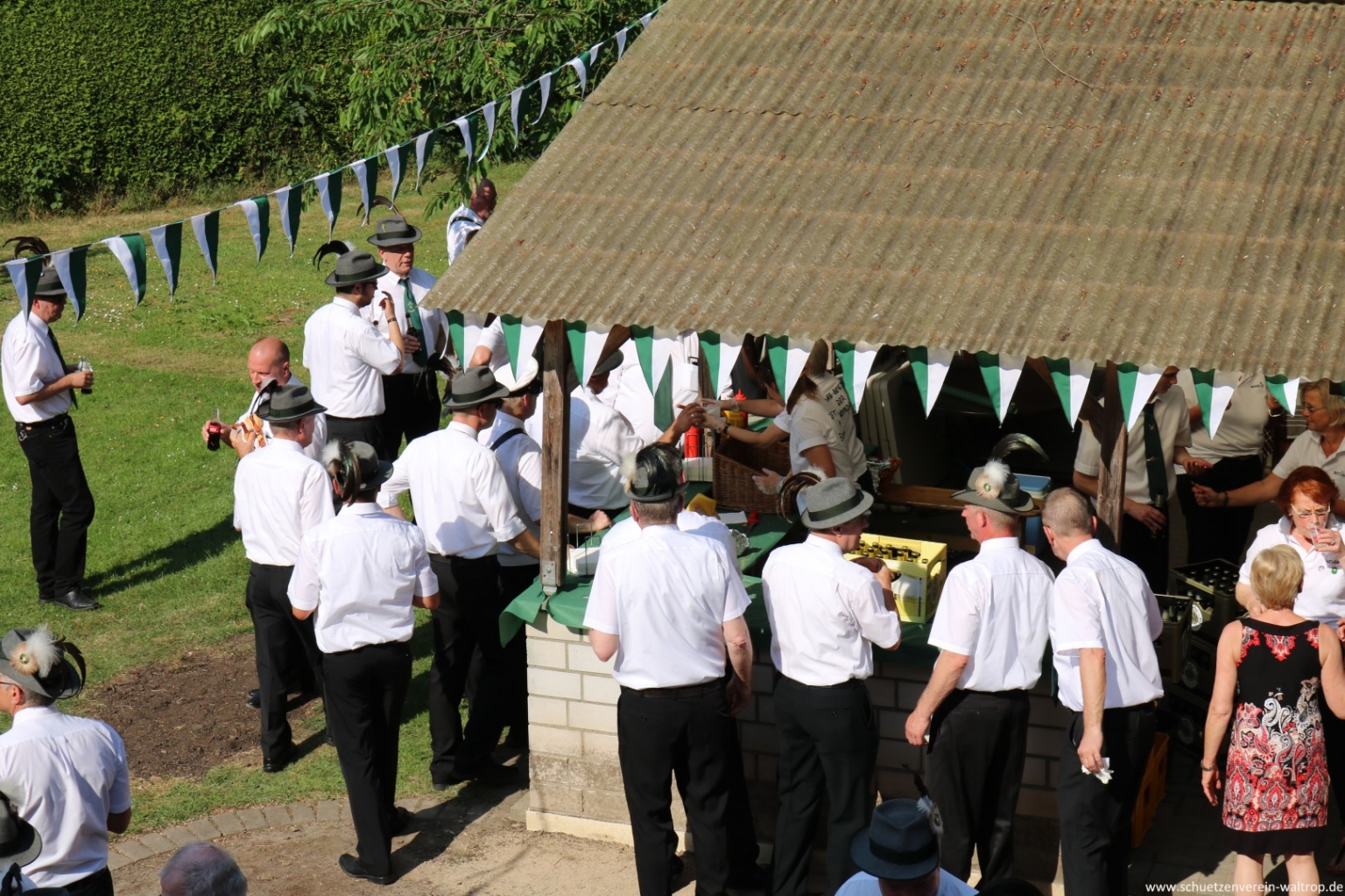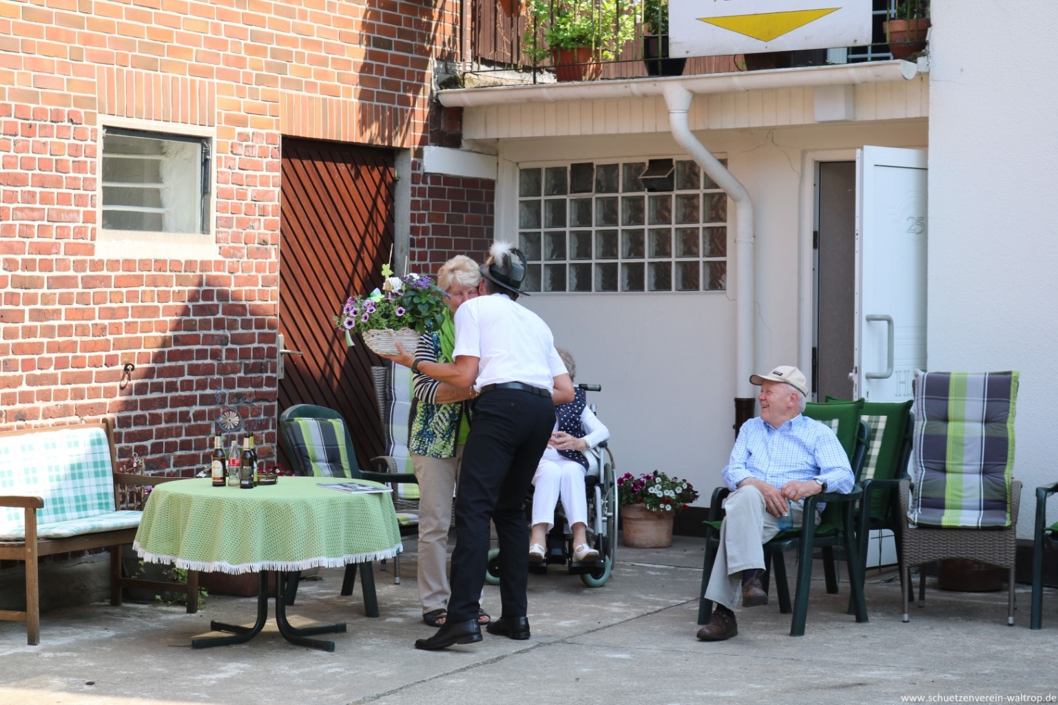 Im Innenhof des Hauses Riechmann wurden wir anschließend hervorragend bewirtet. Bei kühlen Getränken, Wein und Grillwurst konnte das rundum gelungene Vogelabholen noch gebürtig ausklingen.