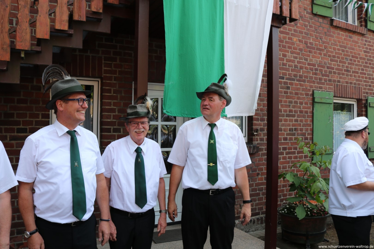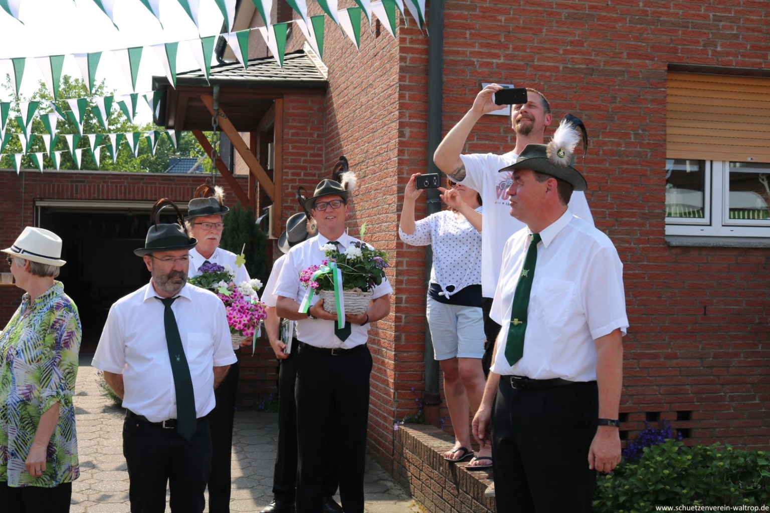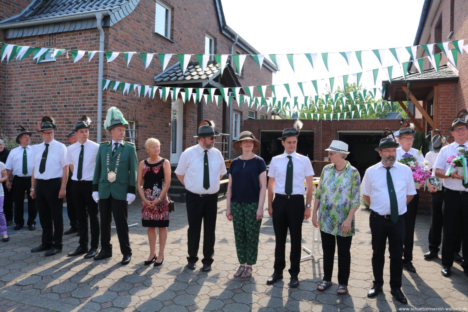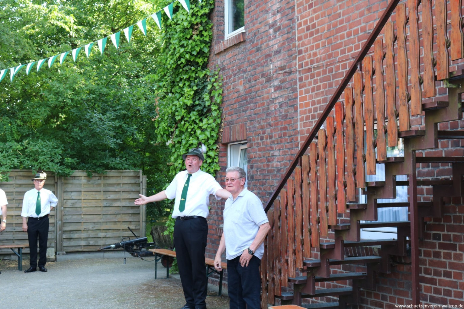Im Innenhof des Hauses Riechmann wurden wir anschließend hervorragend bewirtet. Bei kühlen Getränken, Wein und Grillwurst konnte das rundum gelungene Vogelabholen noch gebürtig ausklingen.