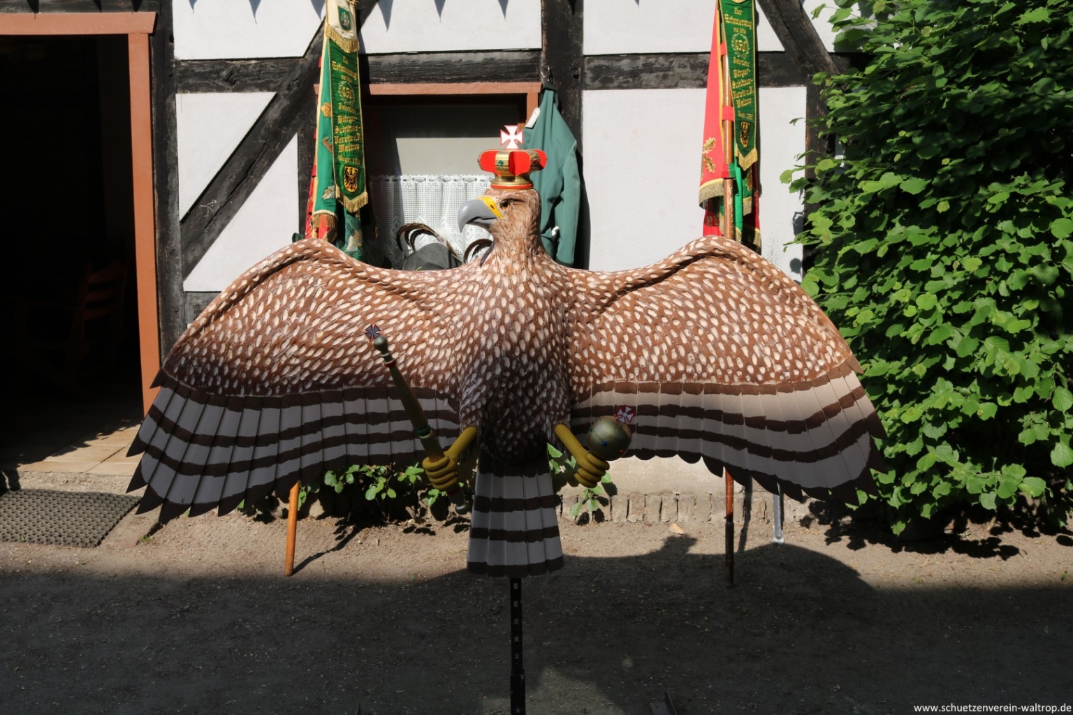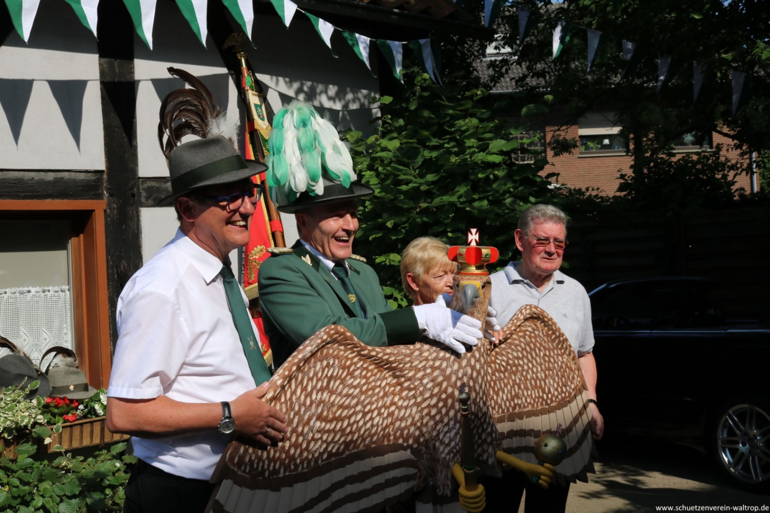 Natürlich zogen wir nicht weiter, ohne uns vorher ausgiebig bei Vogelbauer Hubert Brüggemann zu bedanken. Hubert hat uns wieder einmal einen gewohnt prächtigen Vogel gebaut und uns auf seinem Hof herzlich willkommen geheißen.