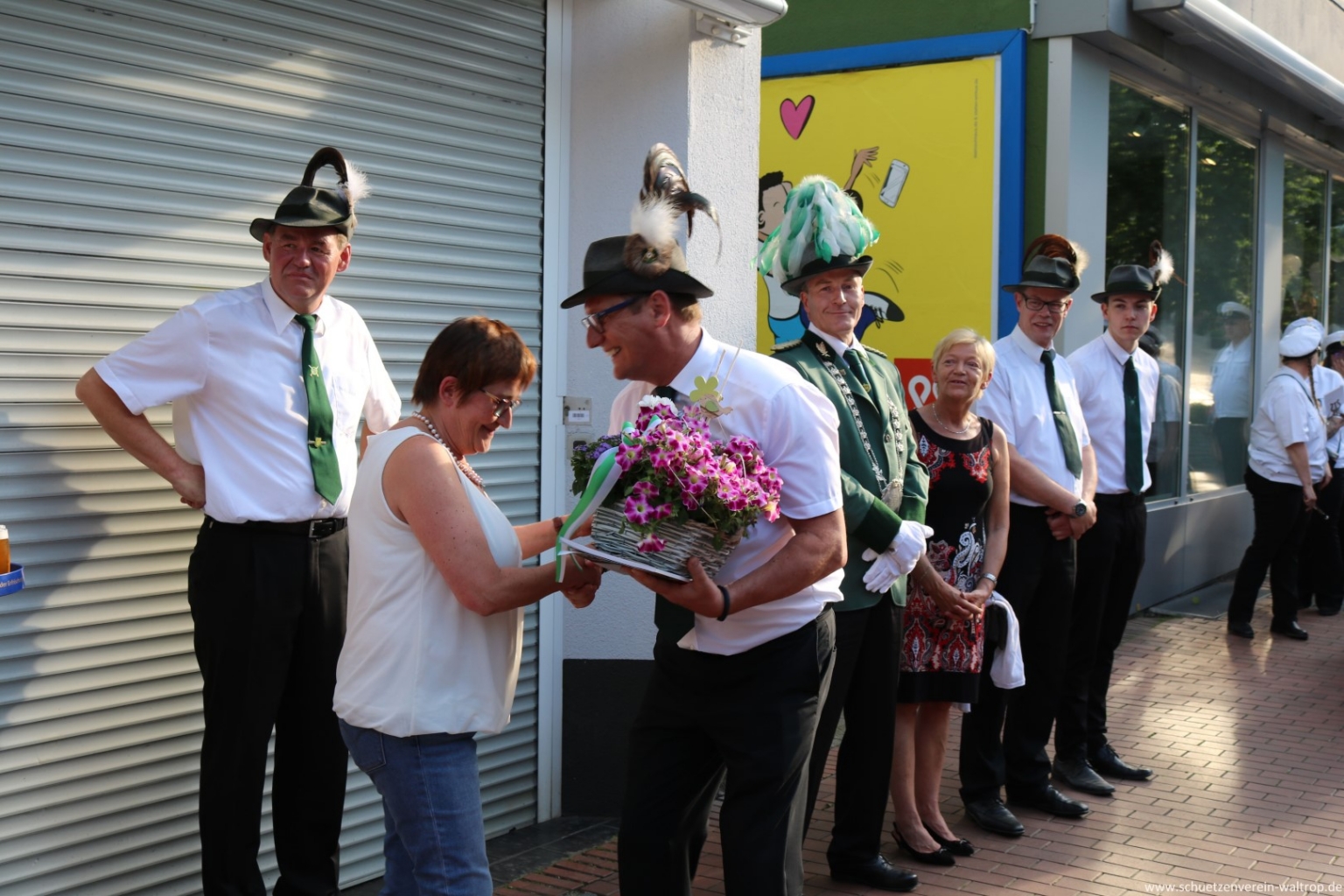Natürlich gab es auch hier aus den Händen von Ludger tolle Blumen und eine Ausgabe der Festzeitung.