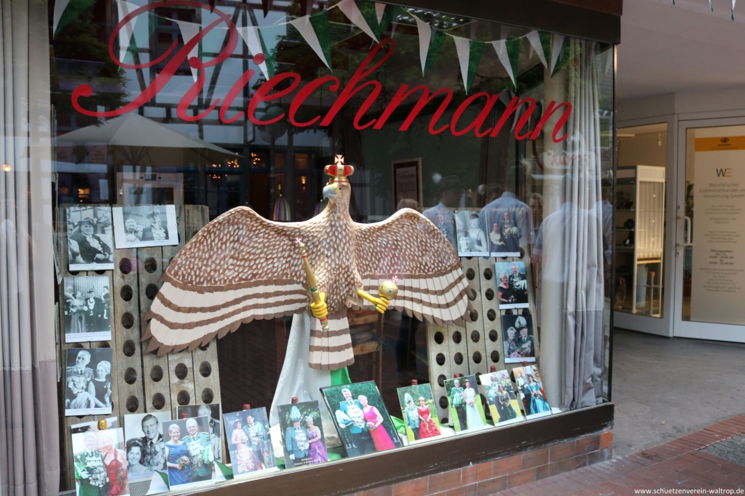 Der weitere Weg führte uns ohne weitere Umwege oder Unterbrechungen zurück über die Brockenscheidter Straße in Richtung Innenstadt. Dort war bekanntlich das Haus Riechmann unser Ziel, wo bereits ein toll hergerichtetes Schaufenster auf den Vogel wartete.