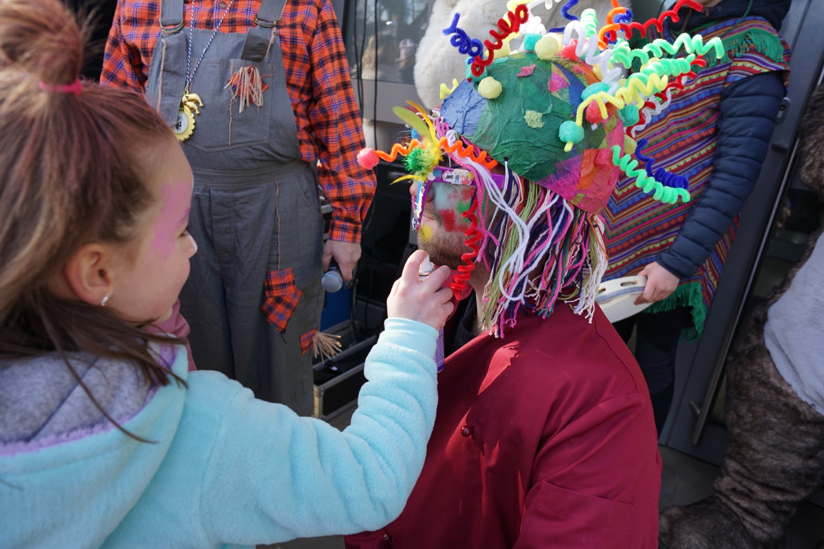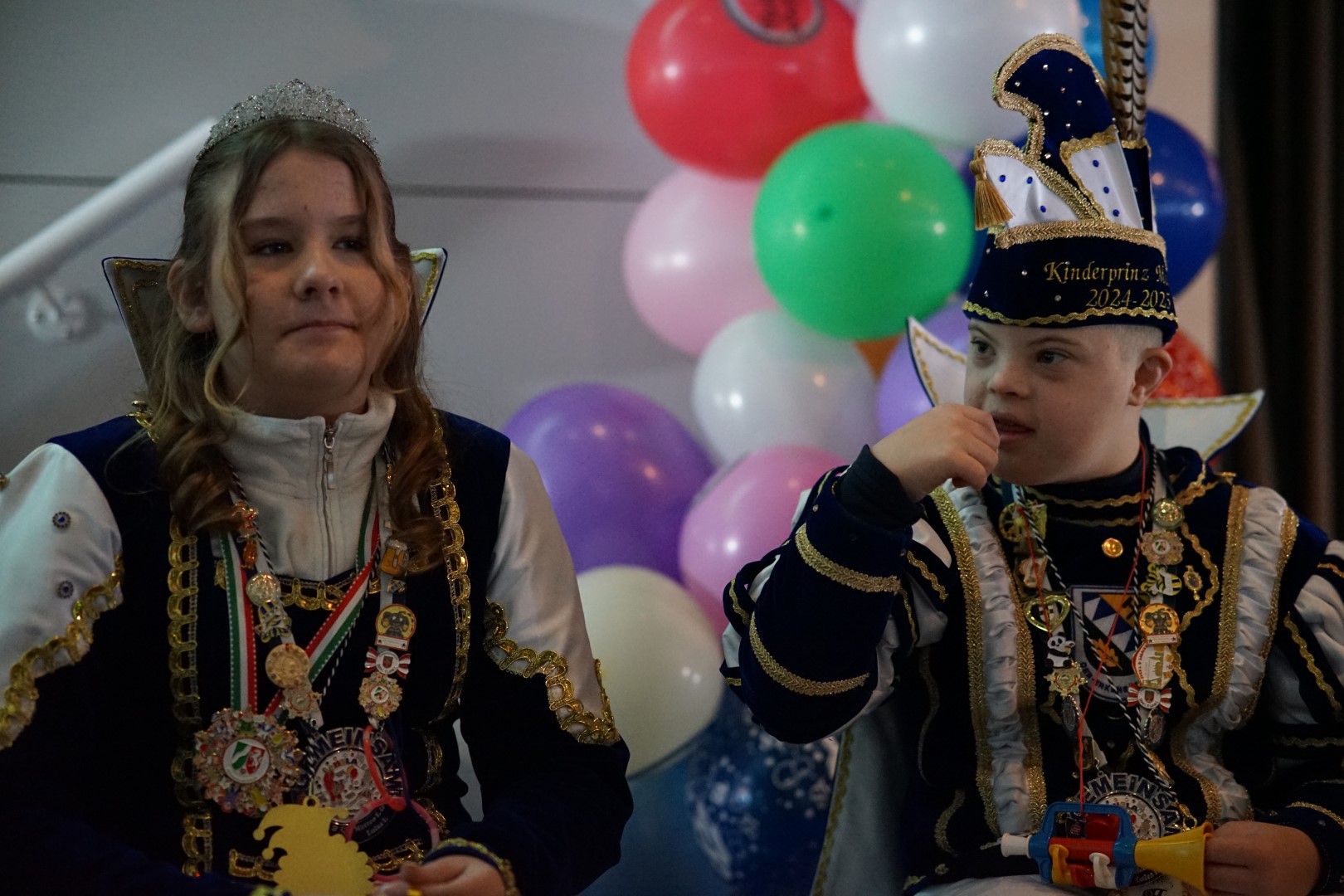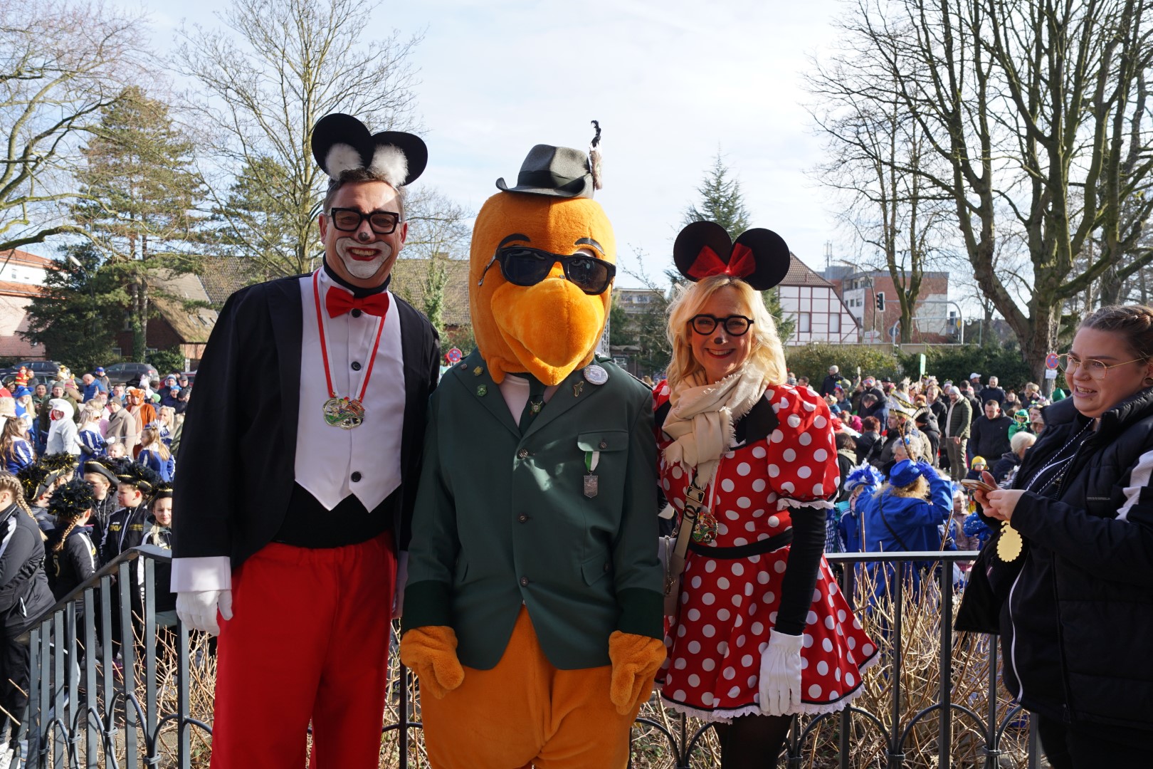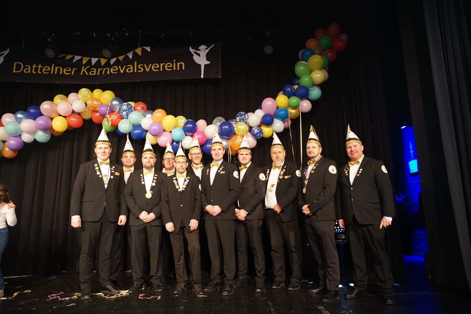Fleißige Kinderhände haben für Marcel ein komplettes närrisches Outfit zusammengestellt, sodass sich dann nach einer kurzen Eröffnungsrede des BM sowie Konfettiregen abgefeuert durch das Königspaar sowie vom Hauptmann Dirk Lehnhardt und vom Vorsitzenden des Dattelner Karnevalvereins John Aravantinos, sich der Jeckenzug unter musikalischer Führung des Fanfarenzugs Blau-Weiß Bochum Hamme 1984 e. V in Bewegung setzte. Gefolgt von zahlreichen bunt gekleideten Kindergartengruppen, dem Kinderprinzenpaar des KG Blau Weiß am Stimberg e. V., Luisa I. u. Matteo I. nebst Minigarde, dem Dattelner Karnevalsverein e. V. mit den Tanzgruppen und natürlich der Bürgermeister mit dem Königspaar des BSV Waltrop und ihrem Hofstaat,
