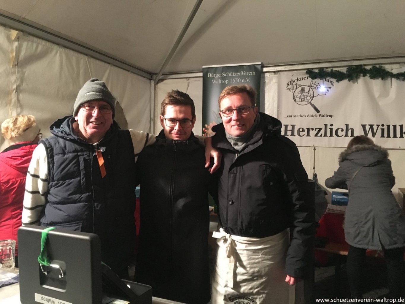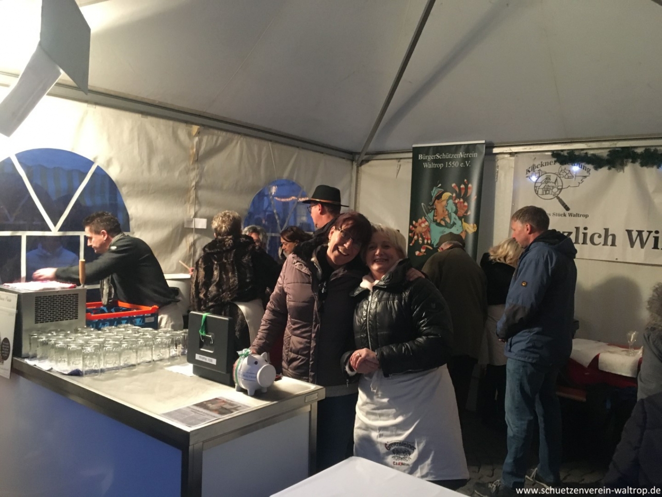 Rund um die St. Peter Kirche hatten die unterschiedlichsten Vereine ihre Stände bezogen und boten neben den Klassikern Glühwein und Bratwurst auch viele andere Spezialitäten an. Alle teilnehmenden Vereine hatten im Vorfeld viel Mühe und Arbeit investiert und diese sollte auch belohnt werden. Bei bestem Weihnachtsmarktwetter zog es bereits ab dem Samstag nachmittag hunderte Besucher in die Stadt. Der Kirchplatz war rappelvoll, mittendrin natürlich auch der BSV Waltrop.