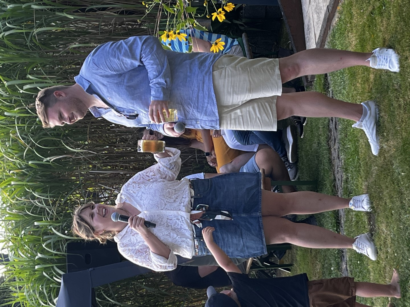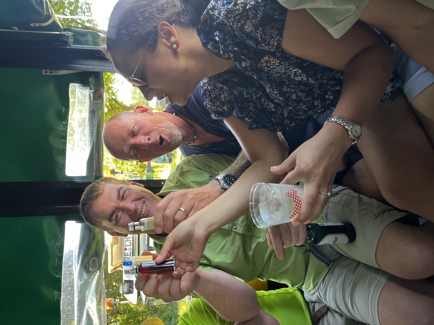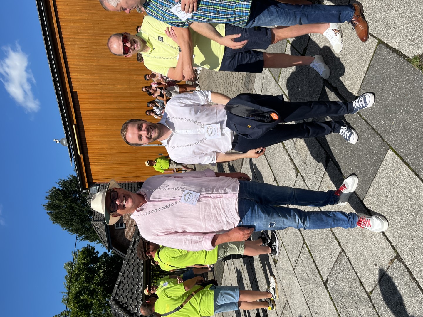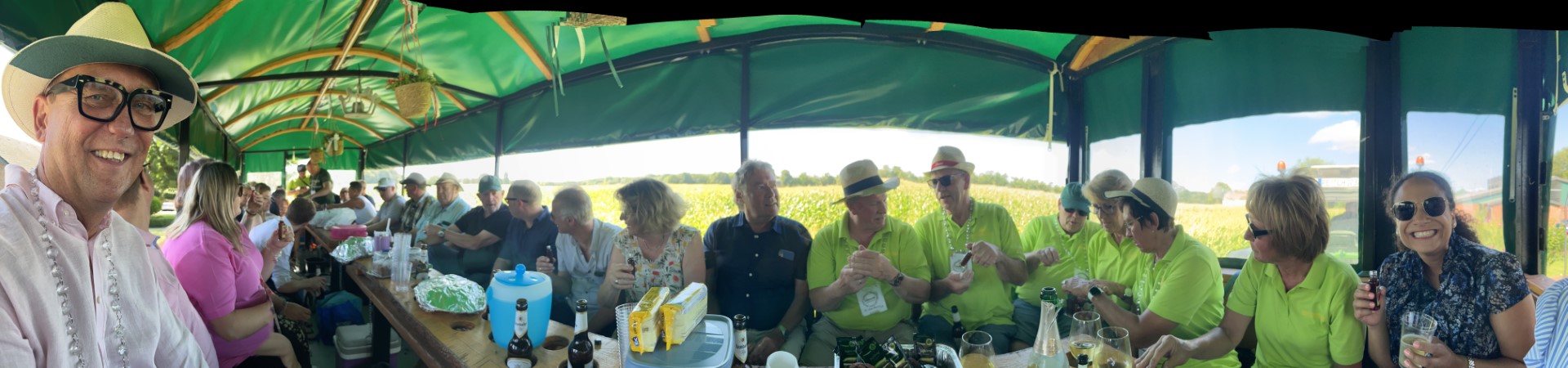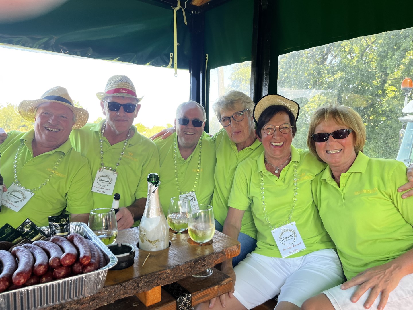 Gestartet wurde bei herrlichstem Sommerwetter vom Hof Köster dann mit vielen Planwagen und guter Laune. Dabei gab es am Lehnemannshof einen kleinen Zwischenstopp, den das Königspaar Ludger und Claudia mit Unterstützung der 1. Kompanie organisiert haben. Hier gab es ein paar Kaltgetränke in Form von Bier und Sekt. Weiter ging es dann Richtung Vinnum, wo alle dann wieder gut versorgt wurden diesmal von Franka Messmann-Degen nebst Familie. Für alle Beteiligten fand dann schließlich der Ausklang der Rundfahrt auf dem Hof Zimmer statt, allerdings ohne das Königspaar Ludger und Claudia, denn diese hatten noch einen Doppeltermin wahrzunehmen, denn der Adjutant René Bülhoff und seine Laura hatten zum Polterabend eingeladen.